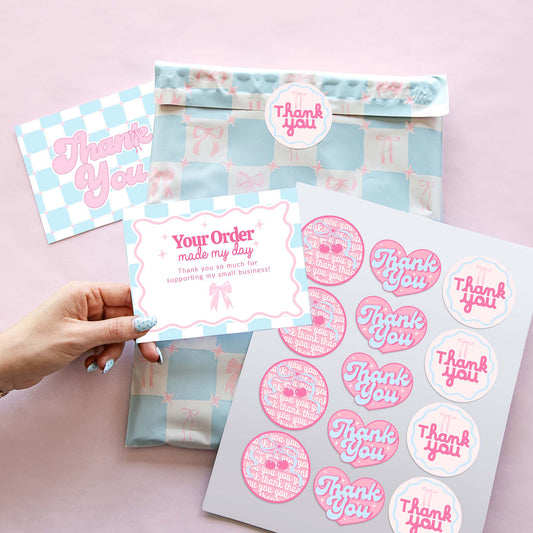 Bows & Checks Thank You Stickers | 2" Matte | 48pk