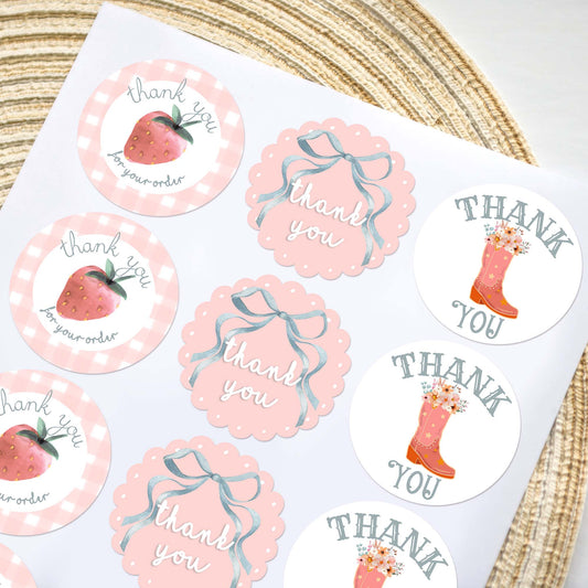 Strawberry Aesthetic Thank You Stickers | 2" Matte | 48pk